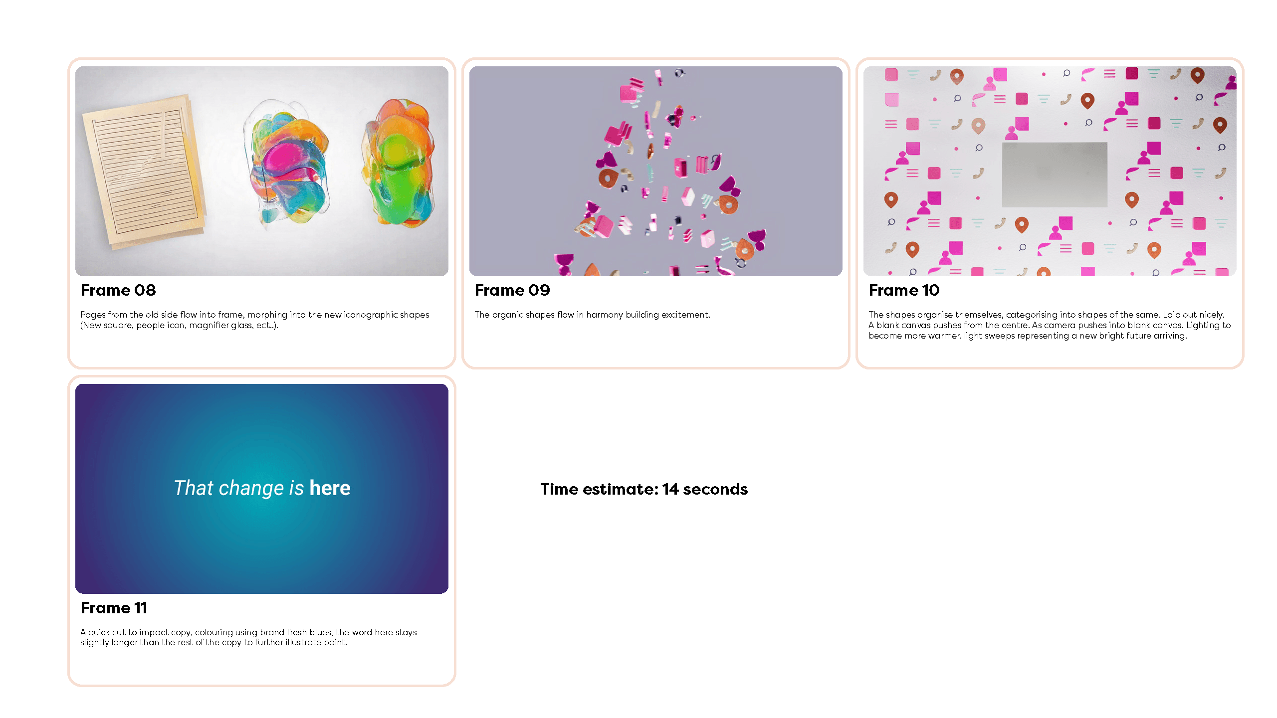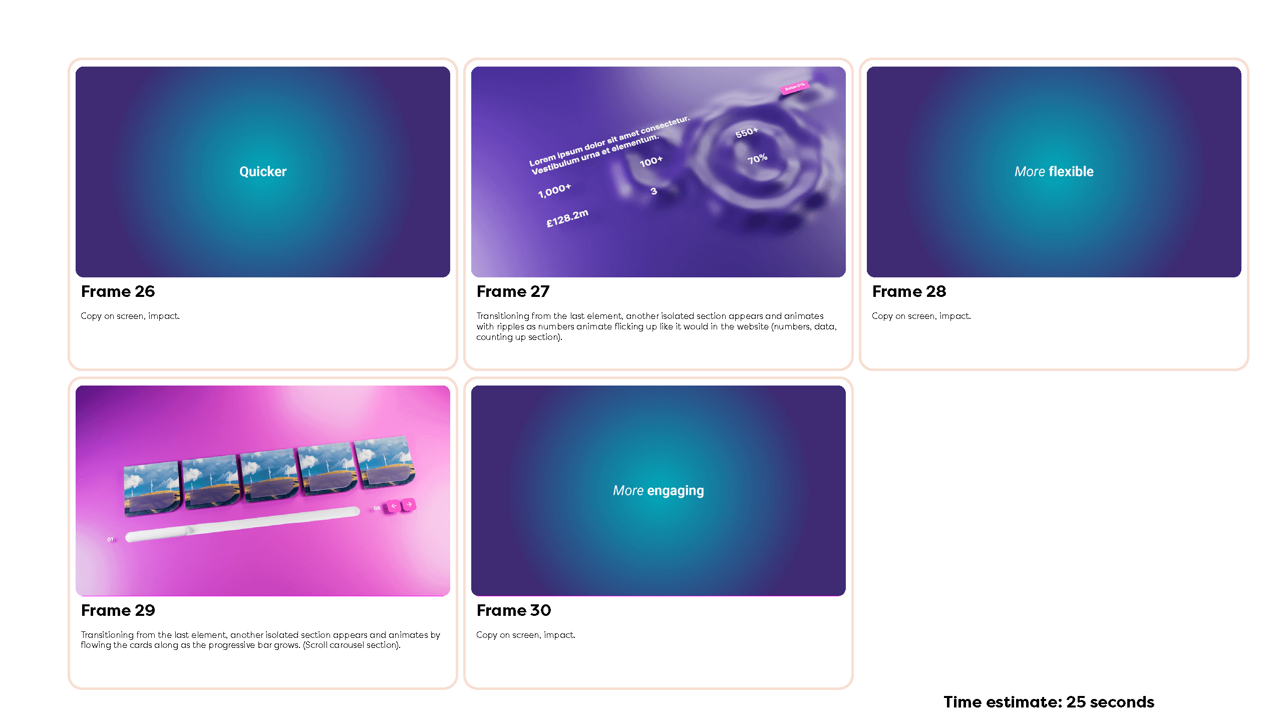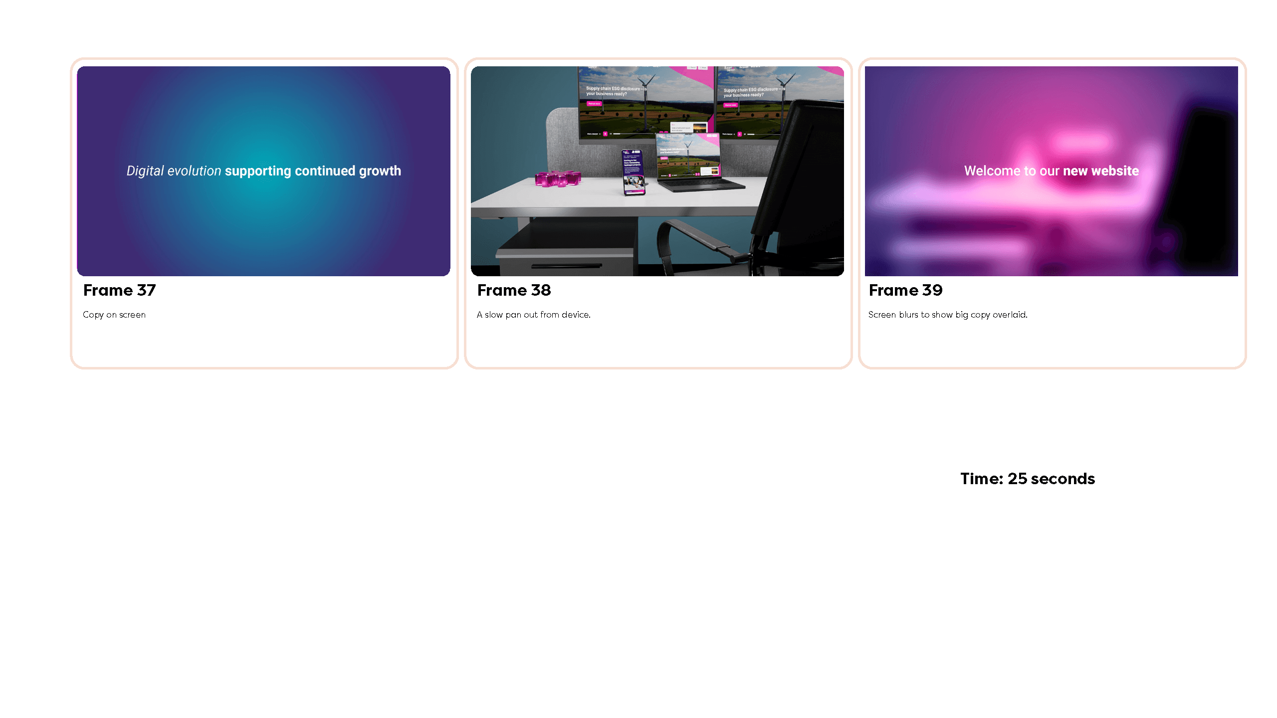 From there, I built out the storyboard, refining the flow and hierarchy of information. Rather than relying purely on sketched frames, I introduced early 3D elements and more developed layouts. Because 3D work is time-intensive and later changes can be costly, working closer to final-style frames allowed the client to visualise the outcome more clearly and make confident decisions early in the process.