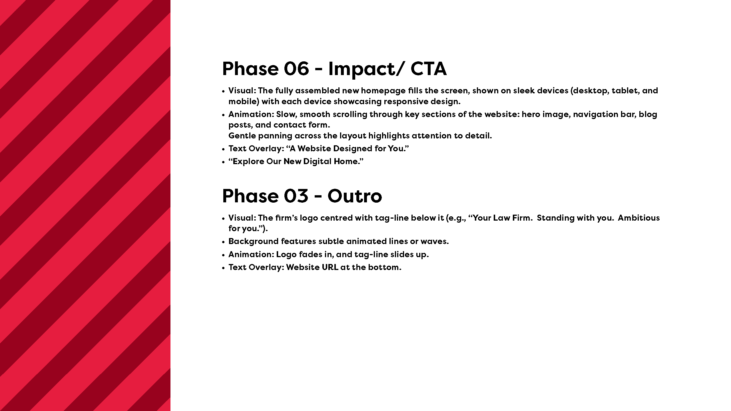 Each animation was designed to be modular and easy to deploy, giving the internal team options depending on context, tone, and duration. Subtle motion, timing, and pacing were carefully considered to ensure the animations felt confident and refined, enhancing the brand rather than overpowering the content they accompanied.