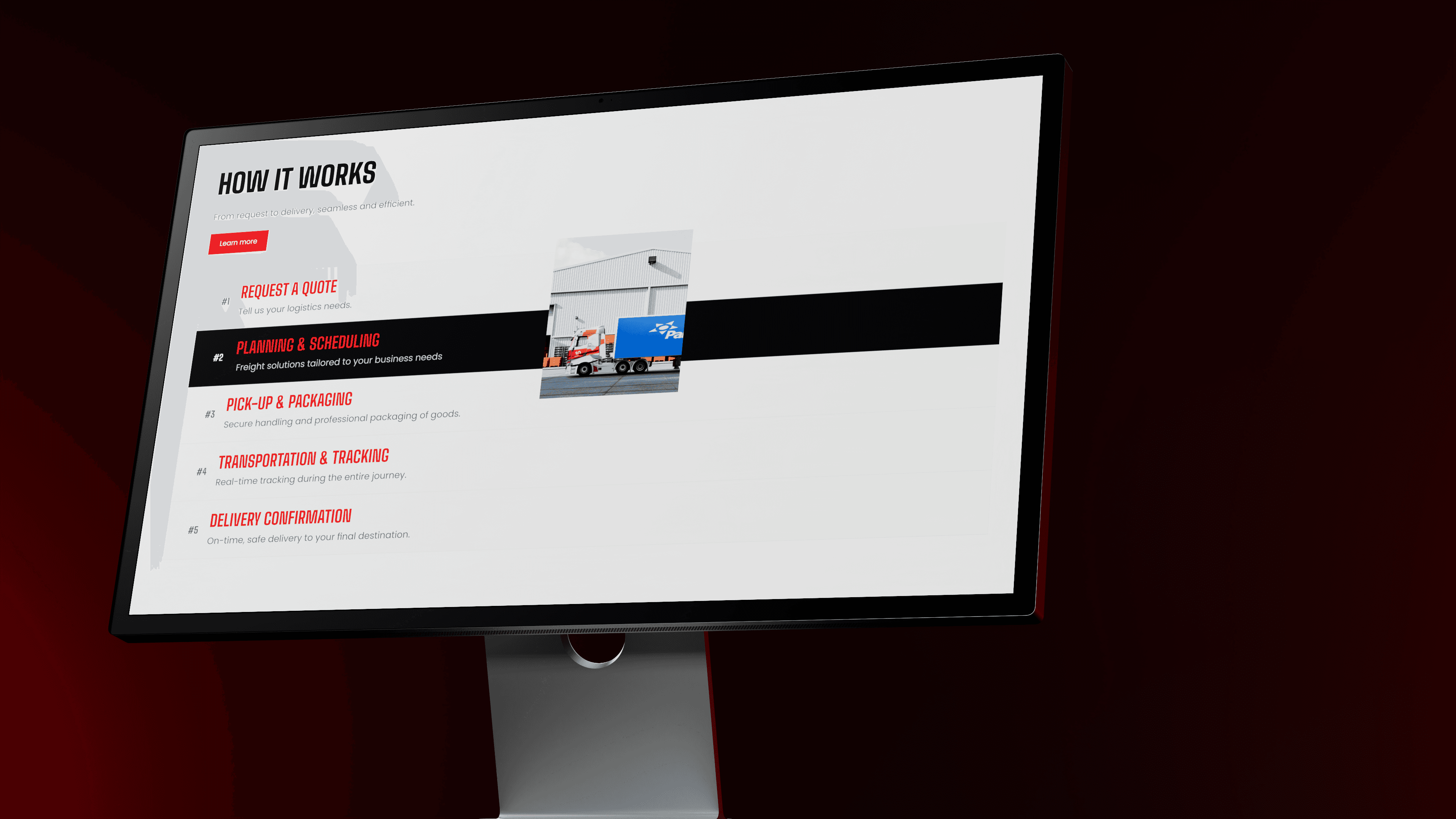 To support this, a series of realistic 3D truck renders were produced and integrated throughout the website. These visuals reinforce the scale and professionalism of the network while giving the site a strong and distinctive visual identity.