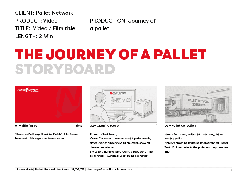 With the visual language established, the focus moved into story development to map the pallet journey across the network.